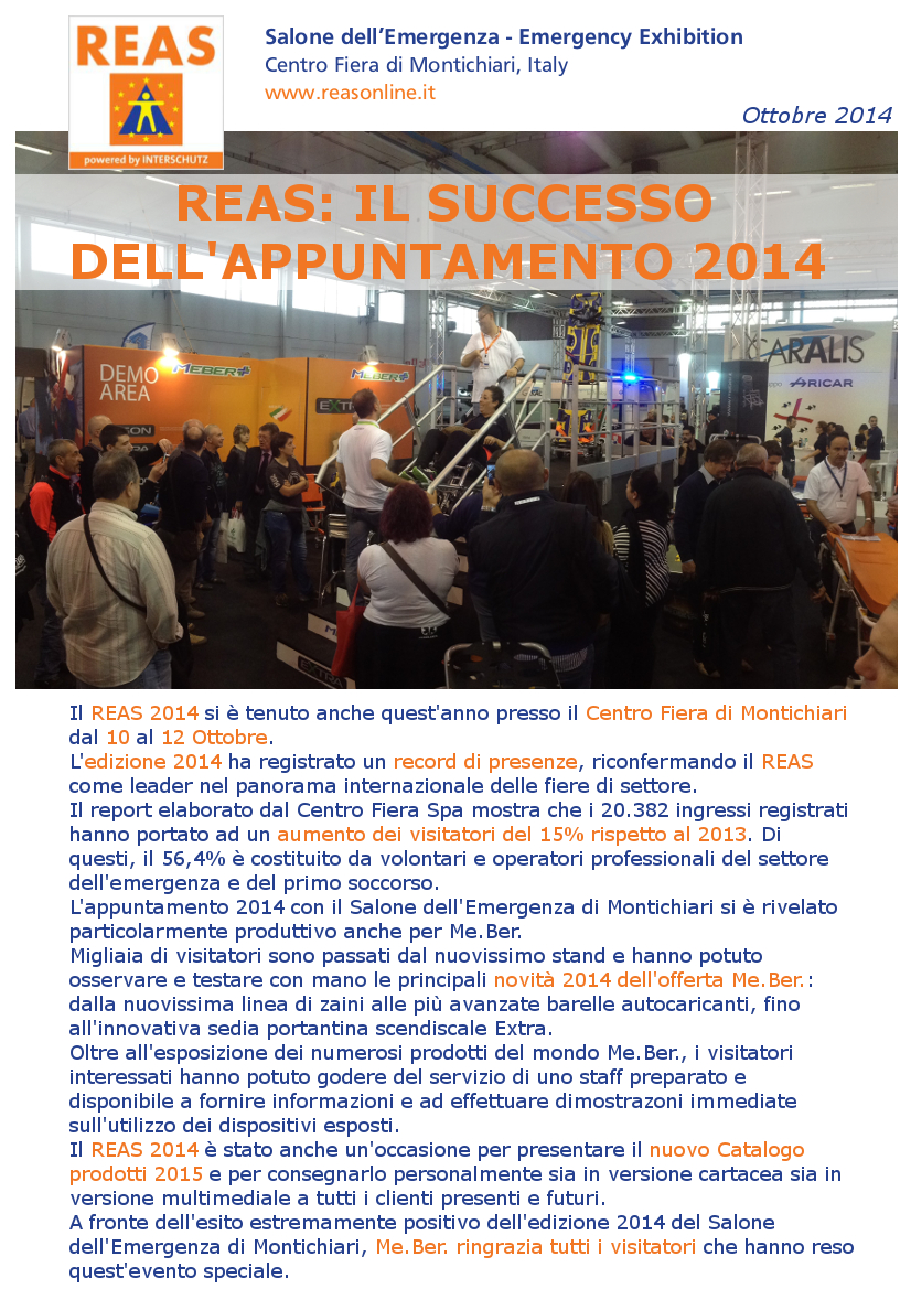 L'edizione 2014 del Salone dell'Emergenza di Montichiari si è rivelato un successo per il record di presenze registrato. MeBer, come ogni anno, ha partecipato all'appuntamento e ha presentato le ultime novità.