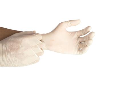 Latex gloves of very good quality. With powder, not-sterile, two-handed. Available in 3 different sizes. Packages containing 100 pieces.