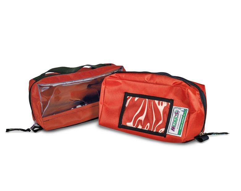 Grey, blue, red, ornage, rectangular inside bag for knapsacks.