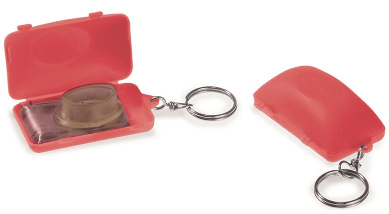 Keyring with mouth-to-mouth maskMouth-to-mouth safety mask that allows ventilation in complete safety thanks to a transparent sheet and a NON-return valve which prevent the patient’s exhalation from coming into contact with the rescuer. It is supplied in a handy container with keyring.