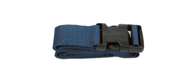 Blue belt in 2 pieces with plastic buckle Blue belt in 2 pieces with plastic buckle - height 50 mm.