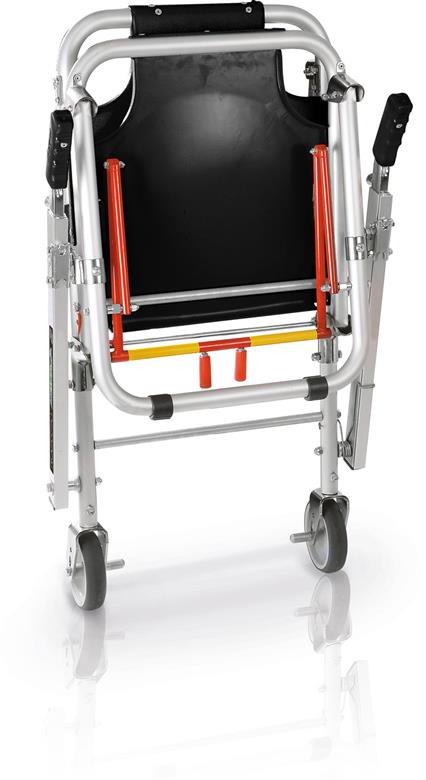 Designed to be an essential device for patient transport this chair is made of light anodized aluminium. Supplied with 4 levers (2 rear and 2 front extractable) and 2 fixed wheels Ø 125 mm, it is practical and easy to use. Open/close mechanism avoiding accidental closures. Supplied complete with black bag with 3 belts (Art. 590/N).