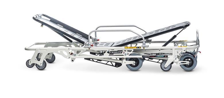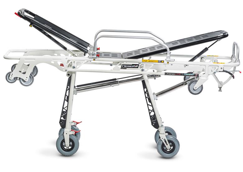 “FROG LITE” self loading aluminium stretcher with trendelenburg certifiedMade of painted aluminium alloy, extremely light, it is also provided with trendelenburg. The 4 Ø 200 mm polyurethane wheels (2 fixed with brake and 2 rotating with self-centring system) grant high comfort on uneven surfaces. Easy to clean and desinfect.