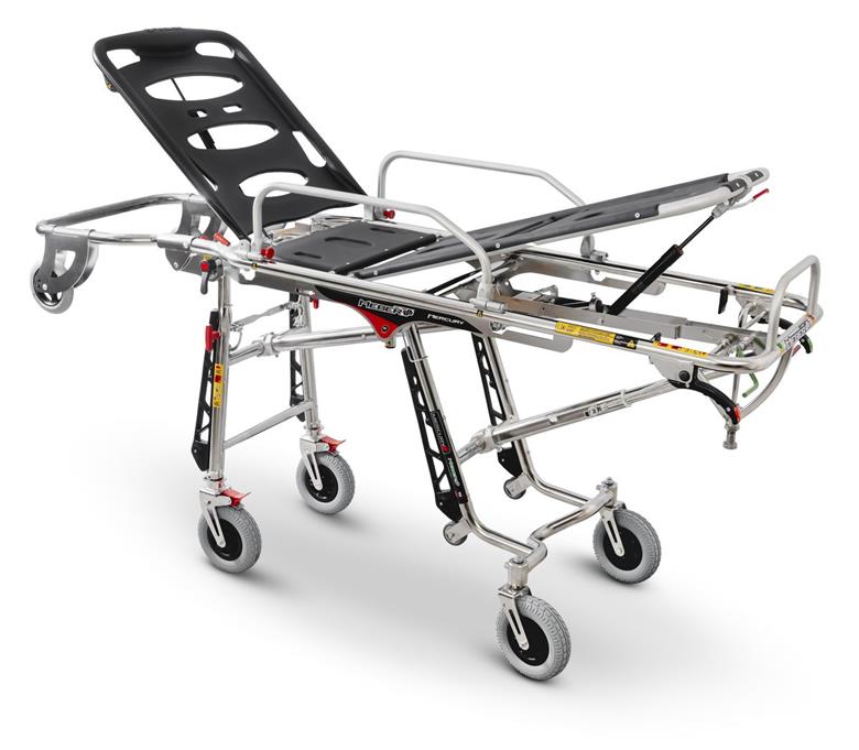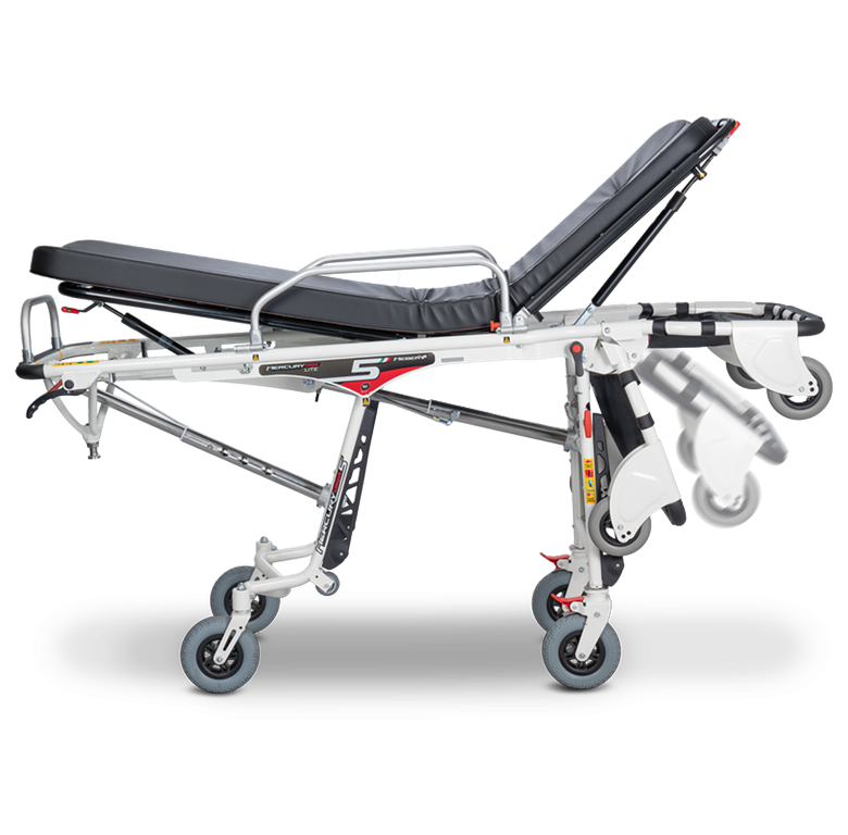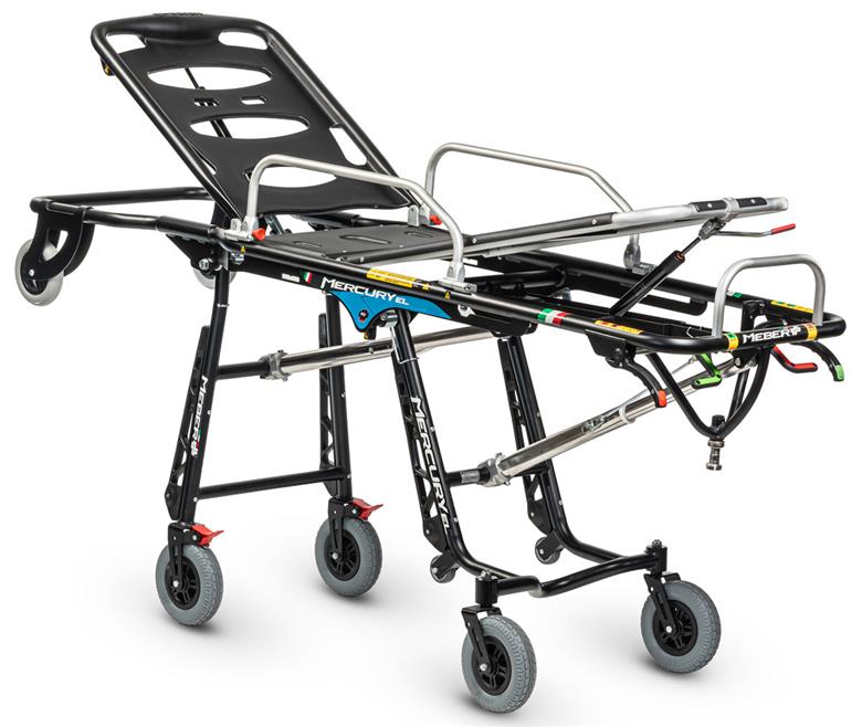 Mercury Cinque is a certified 5 levels self-loading stretcher with 4 swivel wheels, the only five-height with a folding front trolley and the only one that guarantees the maximum capacity of 250kg on all five levels