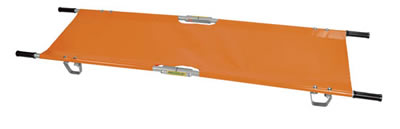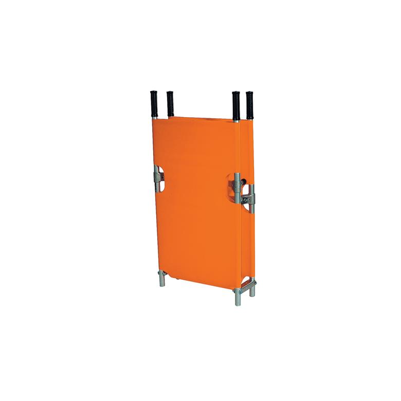 Collapsible rescue stretcher foldable in 2 piecesDesigned for the transport also of heavy patients, this stretcher can be folded in two pieces. The canvas is built in fire-resistant, impermeable, tear-resistant PVC-coated nylon. Fixed handles. Straps are not inclued. (see “Restraint systems” Art. 604/MEB).