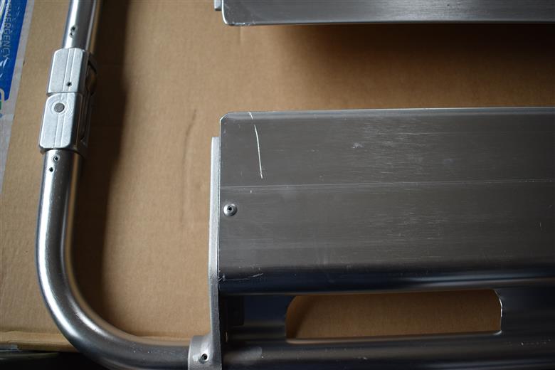 Grey anodized anti trauma scoop stretcher with head/trunk in one piece. Scratches - Price: € 169,00 NO VAT Grey anodized anti trauma scoop stretcher with head/trunk in one piece. Some scratches on the stretchers.Quantity: 4