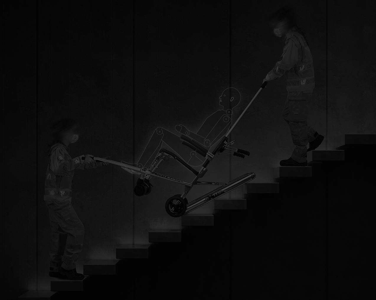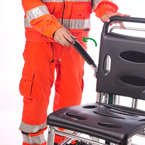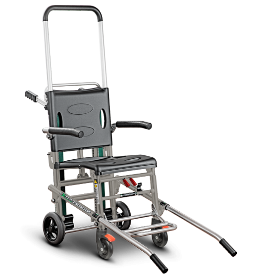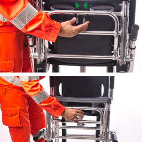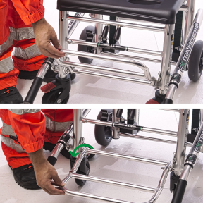 Nessun'altra sedia sul mercato consente una appoggio sicuro su tre gradini contemporaneamente. In questo modo è possible garantire la massima sicurezza al paziente e agli operatori durante ogni fase del servizio.