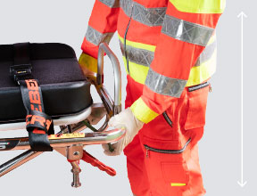 The stretcher controls and general ergonomics are designed not to overload the rescuer, especially to relieve the load on the back.