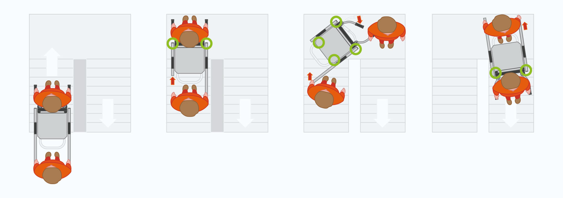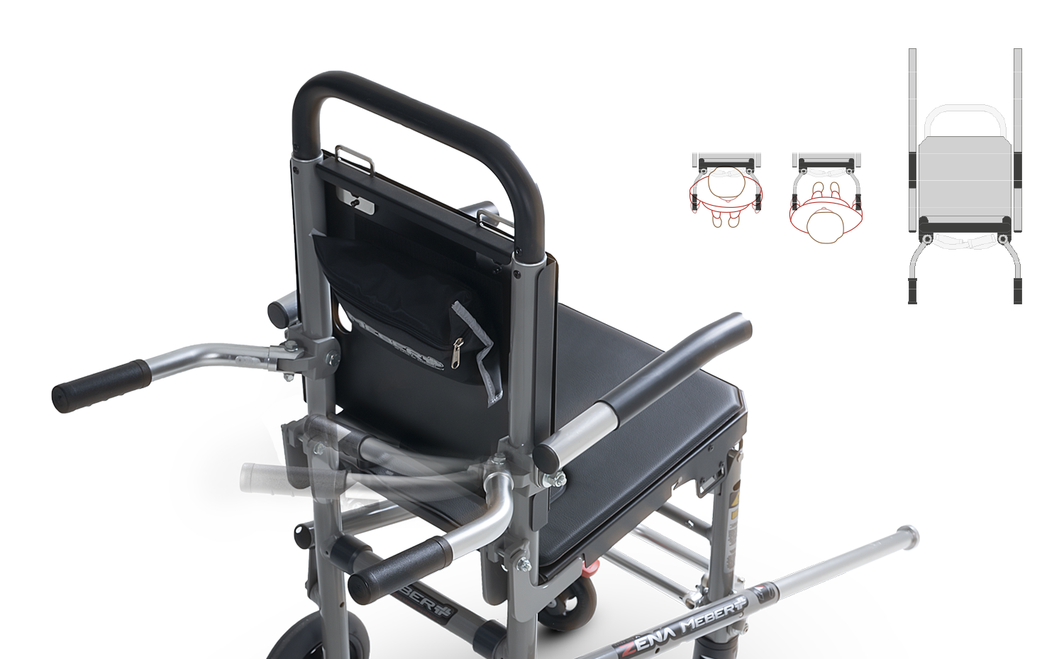 Zena è l'unica sedia espressamente concepita per operare in spazi stretti. Tutte le leve e i dispositivi di cui è dotata sono specificamente studiati per rendere agevole il recupero e il ricollocamento dei pazienti in situazioni impensabili con altre sedie.
