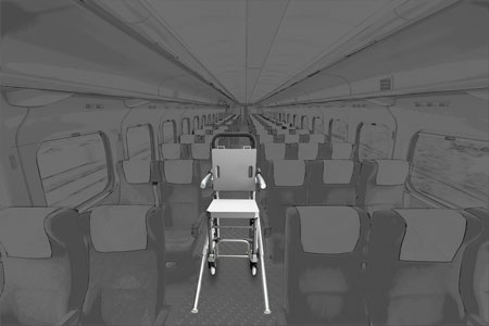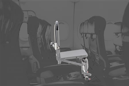 Anche le strette corsie degli aerei di linea non sono un problema per Zena che può essere usata efficacemente come dispositivo di evacuazione.